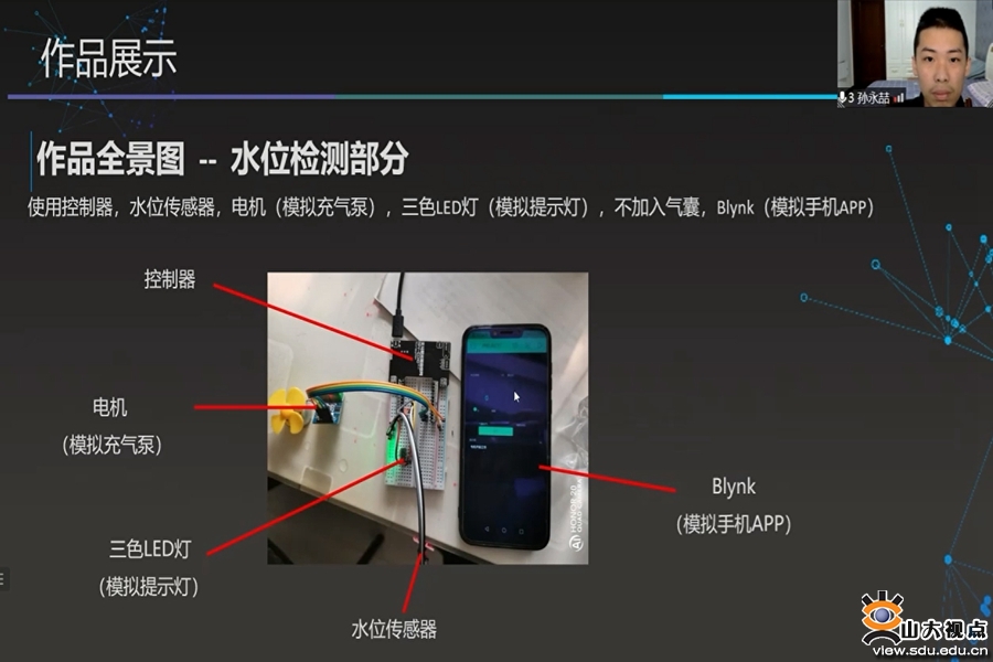 在2月5日的结营活动中,各分营学生代表展示了自己的研究成果。AIOT创新开源实训未来科学营的陈尚晖、薛鹏宇和孙永喆分别展示了自己制作的“智能植物补光系统”“老年人健康辅助器”和“车辆避水装置”作品;人工智能与发明创造未来科学营的韩文韬展示了自己的“智能衣柜系统”作品;物理探索未来科学营的麻新阳和刘艳琦分别展示了自己“磁电式直流电表”和“微安表的安装”实验设计;电子电路未来科学营的王少航展示了“数显计时模块”设计作品。通过展示可以感受到,未来科学营的活动促进了同学们自主学习和创新实践能力。随后,各分营班主任分别作课程总结,并寄语同学们要在学习的道路上知难而进,不断进取。