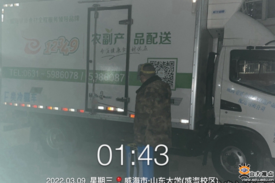 威海出现疫情反弹的情况后,校区后勤管理处迅速行动,多渠道调拨物资,确保校区物资储备充足、进货渠道畅通。从3月8日下午应急保障采购通知发出,到9日凌晨,仅半天时间供货商供应食材物资全部到校。消毒、验收后,统一分配到位。为保障校区一万六千余名学生的正常生活,在校园实行全封闭管理前,450余名饮食管理服务和物业管理与维修服务人员及时到位,克服困难、持续作战,确保食堂供餐不减品、不减质,教学区、学生生活区垃圾及时清理,教学办公楼卫生保洁、防疫消杀保质保量。“我们愿用百倍付出,不负师生期许,让我们不负春光,同心抗疫,静待花开”一名普通的后勤人员如是说。