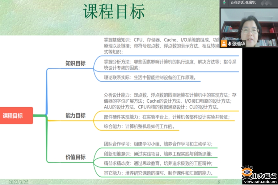 计算机科学与技术学院“计算机组成与设计”课程。张瑞华老师讲授学校一流课程“计算机组成与设计”,该课程在智慧树平台发布。张瑞华老师采用翻转课堂、理实一体化、教学案例详解、课程过程性考核评价等教学模式,基于MOOC的多元化教学资源,借助雨课堂、腾讯会议、平台在线直播、微信群等方式,认真做好课程教学管理。课堂上,张瑞华老师采用弹幕、随机点名、抢答方式实时与学生互动;采用投稿形式对课堂练习进行点评;采用“头脑风暴”工具,对某个知识点进行讨论,激发学生学习的积极性。