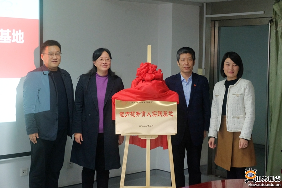 仪式上,王德胜、人事部常务副部长郭春晓、党委学生工作部副部长朱伟、本科生院副院长申树欣共同为山东大学能力提升育人实践基地揭牌。