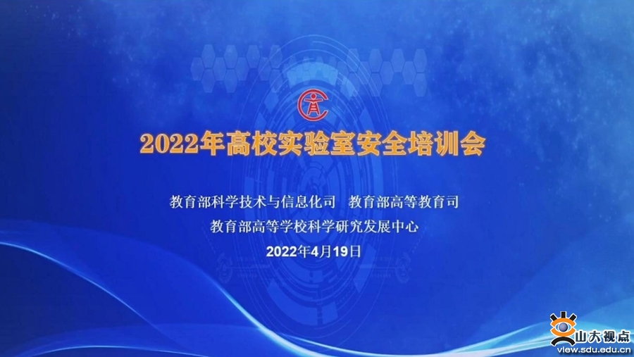 [本站讯]4月19日,山东大学组织实验室安全相关人员通过网络直播参加教育部“2022年高校实验室安全培训会”。会议由教育部科学技术与信息化司副司长张国辉主持。山东大学副校长芦延华线上参会。