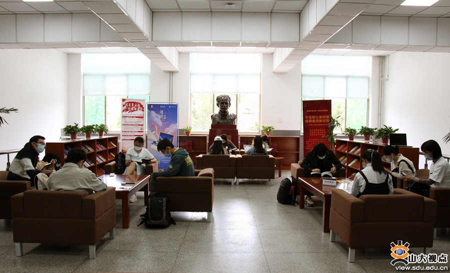 [本站讯]4月21日,山东大学图书馆宣传与阅读推广中心、文学生活馆联合国内二十余家出版机构和文化品牌共同发起的“阅读一小时”活动举行。活动以“阅读,看见世界的回声”为主题,吸引一校三地九馆130余名学生参加,为同学们提供了一片宁静安和的港湾。