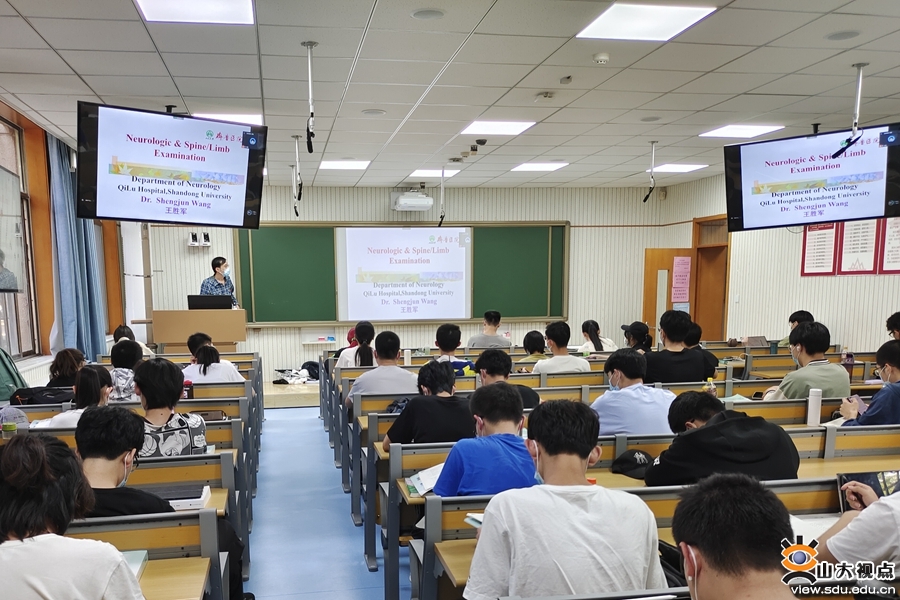 基础医学院的学生正在认真聆听王胜军教授的人体结构与功能学课程课程。