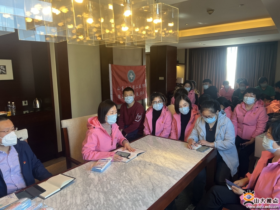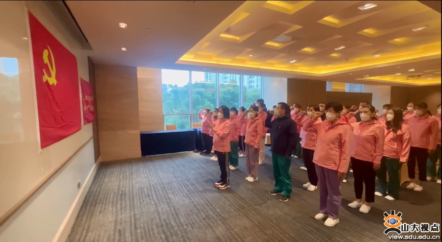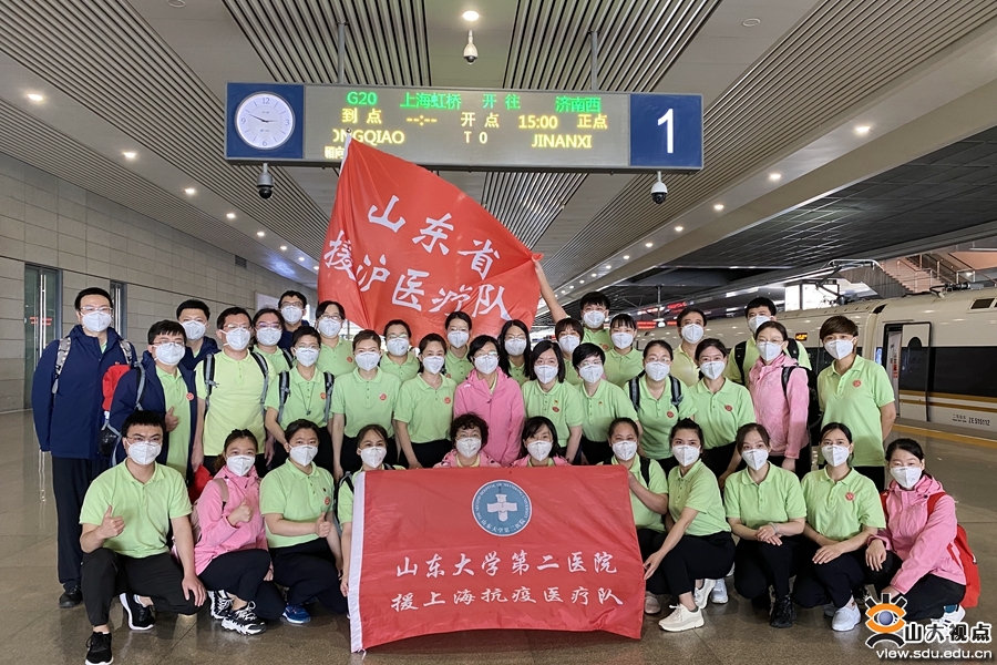 4月3日,响应省委省政府的号召,山大二院36名医疗队员紧急集结,其中党员16名。临行前,医院党委成立了“山东大学第二医院援上海临时党支部”,统一了思想,凝聚了力量。带着院党委的嘱托,带着全院同事及山东人民的深情厚谊,医疗队踏上了南下的列车。