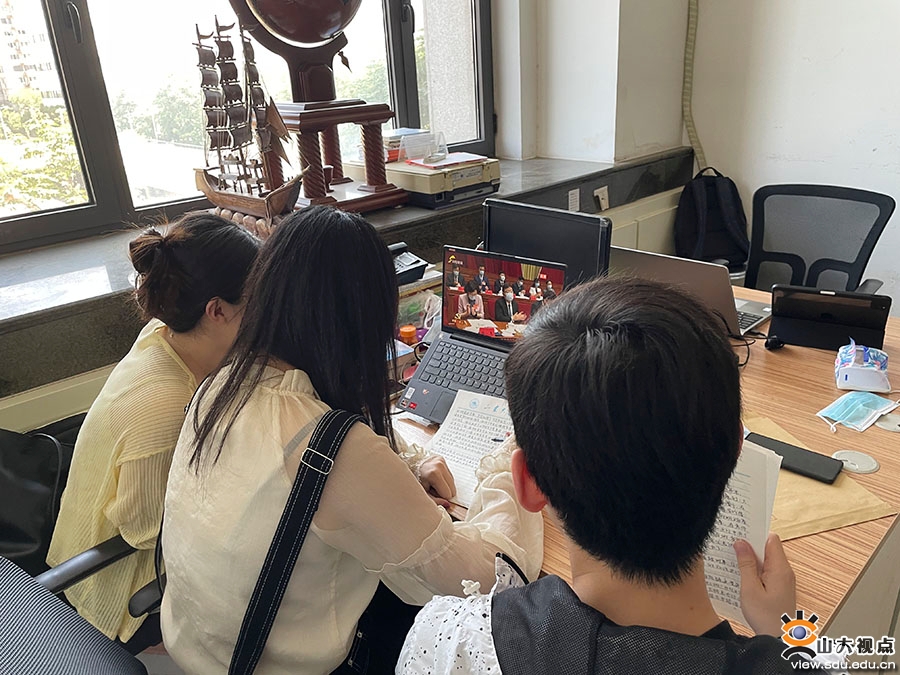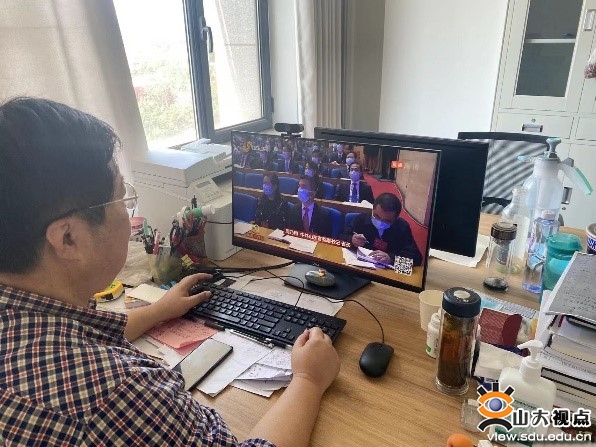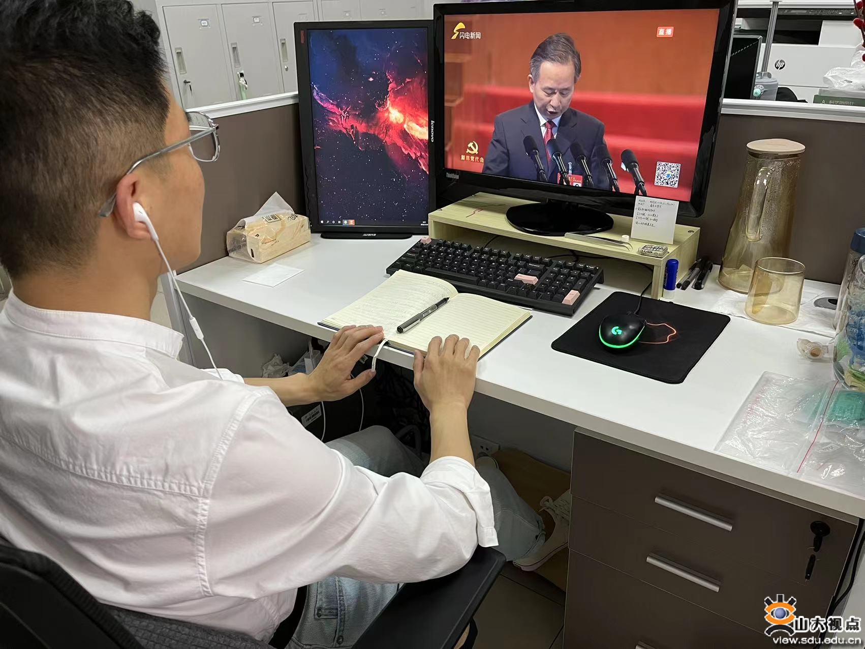服务山东办公室、合作发展部在会议室集中收看了开幕盛况。工作人员冯东阳表示,作为一名教育人员,我将把学习领会、贯彻落实山东省第十二次党代会作为当前和今后一个时期的重要任务,以党代会精神为引领扎实开展各项工作;紧紧围绕以习近平同志为核心的党中央周围,坚持以习近平新时代中国特色社会主义思想为指导,坚决扛起新时代新征程的光荣使命,切实增强政治责任感和历史使命感,以饱满的政治热情和良好的精神状态,认真履行职责;走在前,开新局,努力为使文化教育事业提质升级,达到新高地,实现新跃升的伟大目标贡献力量。工作人员苗露表示,党代会报告中多次提到“文化”,文化是一个民族的精神记忆,一个民族的灵魂和血脉,是一个民族区别于其他民族的文化基因,作为一名山大教职员工,必将牢记总书记的嘱托,坚守初心、引领创新,牢记使命、勇担重托,奋发有为、知行合一,为弘扬中华文化、传播中国精神贡献光和热!