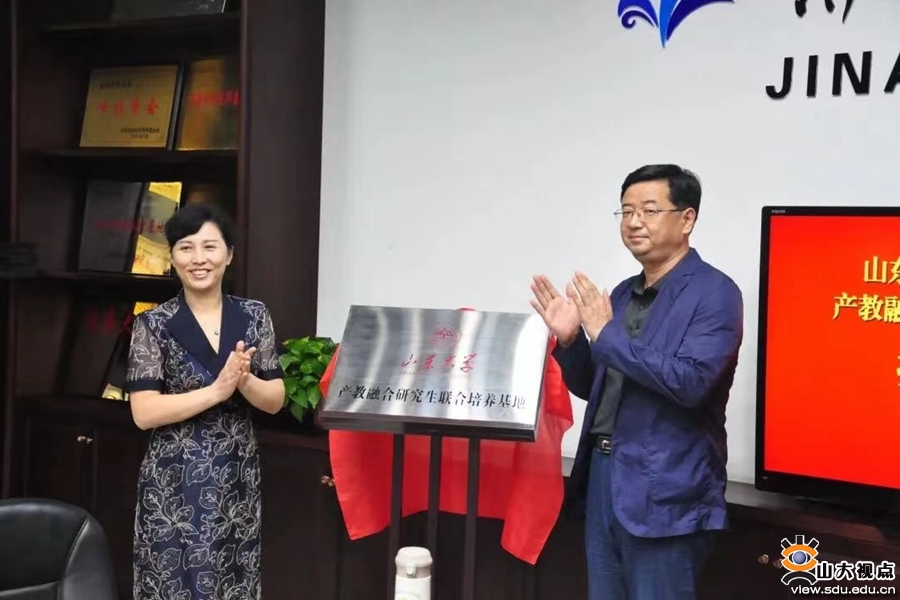 刘军和闫险峰共同为“产教融合研究生联合培养基地”揭牌,刘军为王海和刘昱颁发山东大学图书情报专业硕士研究生行业导师聘书。