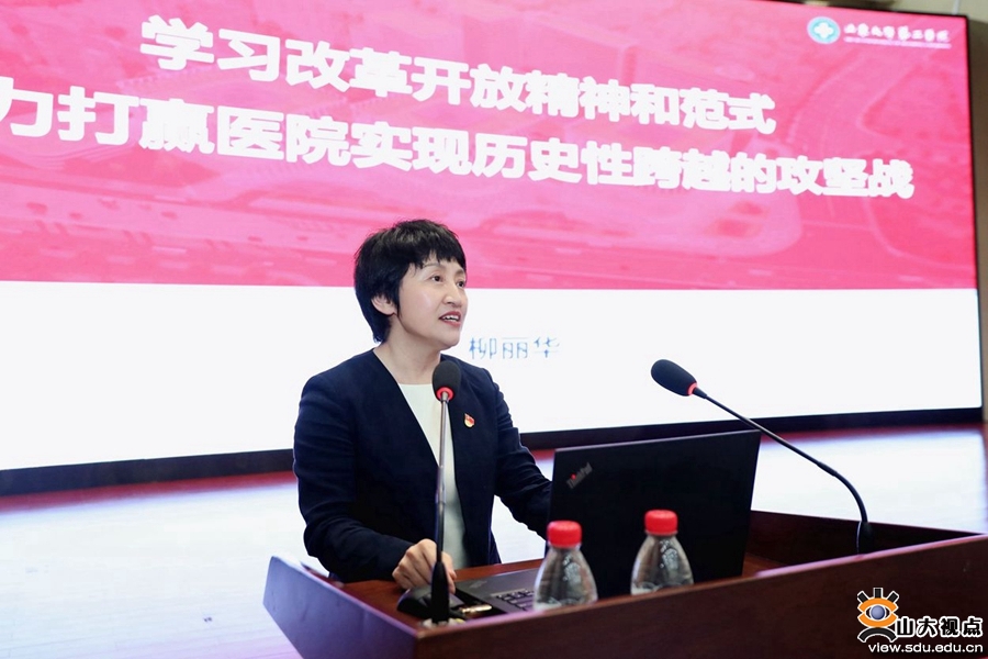 柳丽华提出要满怀信心打赢医院实现历史性跨越的攻坚战,并从五个方面进行阐述。第一,“历史性跨越的新征程”目标明确,路径清晰,催人奋进。“十四五”规划明确了医院发展目标,第二次党代会描绘了实现历史性跨越的六大战略,“1237”行动计划明确了实现战略目标的具体举措。第二,老一辈斗志昂扬,中坚力量敢于担当,新一代奋发向上,“第一资源”争相迸发。医院推行“1+N”人才引育政策体系,打造全覆盖、多维度、进阶式的人才培育链条,涌现出一批技术精进、追求卓越、担当奉献的骨干人才,充分发挥了党员先锋模范作用。第三,医教研协同融合,事业发展态势迅猛。医疗专业(技术)占据省内龙头地位的数量呈逐年递增态势;科学研究蓄势聚能,实现跨越攀升;第二临床学院担当世界一流大学教学医院立德树人使命,培养齐鲁医学最优秀的本科生;高层次人才引育达历史新高。第四,“一院三区”蓝图已定,一体规划,分期建设。第五,政治生态持续向好,形成有为者有位、能干者能上、优秀者优先的良好氛围,医院为每一个想干事、能干事、干成事的人提供舞台。