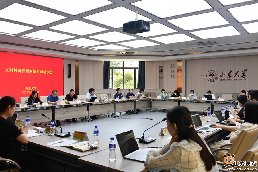 威海校区和青岛校区设分会场,培训会采取线上与线下相结合的方式举办。山东大学人文社科领域各学院、研究院分管科研工作的副院长、科研秘书,一校三地科研管理部门科级以上干部参加专题培训。