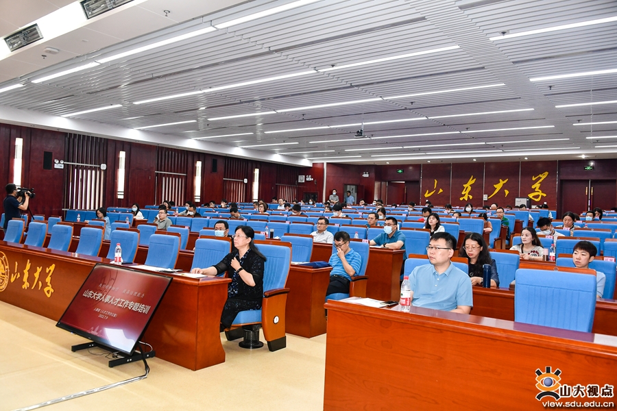 [本站讯]为精准解读新形势下学校人事人才工作新挑战新机遇新思路新举措,听取各教学科研单位关于人事人才工作的意见建议,推进学校人事人才工作高质量发展,7月9日,山东大学在中心校区举办“践行精耕细作 提高治理能力”人事人才工作专题培训会。人事部部长、人才工作办公室主任刘健主持培训会。