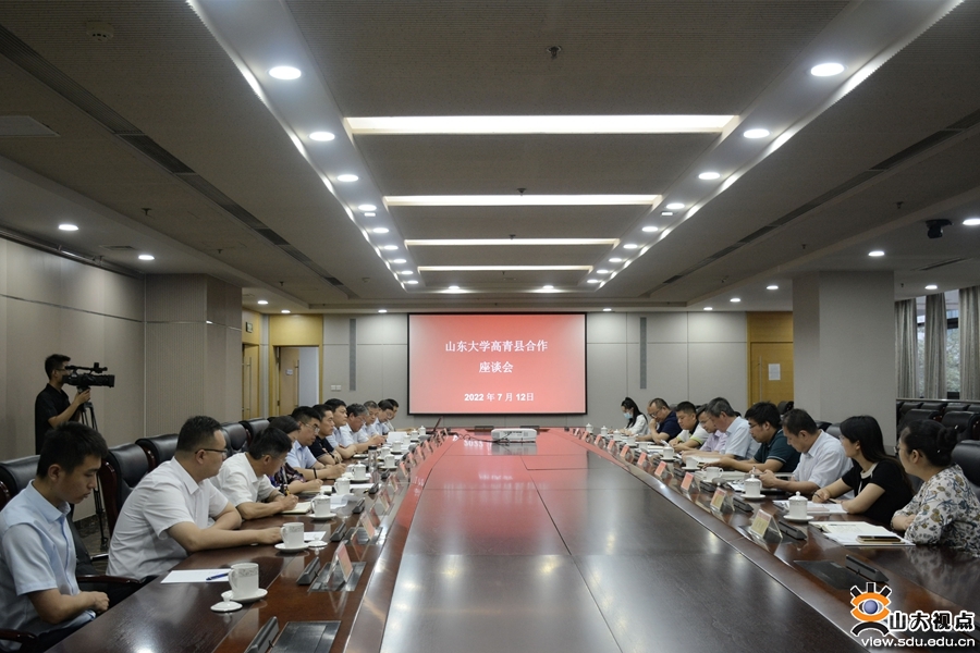 王琪珑对高青县一行表示热烈欢迎,随后介绍了山东大学的办学历史、学科建设和服务山东的新举措,以及习近平总书记给山东大学《文史哲》编辑部全体编辑人员重要回信的情况。他表示,自黄河流域生态保护和高质量发展提出以来,山东大学黄河国家战略研究院深度参与省级政策、规划的制定,也关注了高青的发展及围绕黄河流域所做的工作,并对高青经济社会发展给予高度评价。山东大学将与高青积极沟通交流,在政策咨询、人才引进、技术支持等方面给予高青大力支持。刘学圣代表县委、县政府,向山东大学一直以来对高青工作的关心支持表示感谢。他表示,当前高青正抢抓黄河流域生态保护和高质量发展的重大机遇,加速融入省会城市群经济圈,统筹推进绿色发展先行区、城乡融合样板区、双碳生活示范区、品质民生引领区、创新创业活力区“五区建设”,希望双方通过此次会议搭建交流平台,充分发挥山东大学的科技研发创新、人才链接集聚优势,在产学研合作、人才交流等方面与高青开展深层次合作,借助山东大学优势,讲好黄河故事,传播黄河文化,助力县域经济发展。