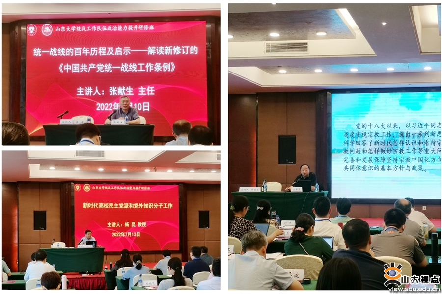 [本站讯]为深入贯彻习近平新时代中国特色社会主义思想,营造喜迎党的二十大胜利召开浓厚氛围,提升山东大学统战工作队伍政治能力和业务水平。近日,山东大学统战工作队伍政治能力提升研修班在教育部高校思想政治工作队伍培训研修中心(云南师范大学)举行。