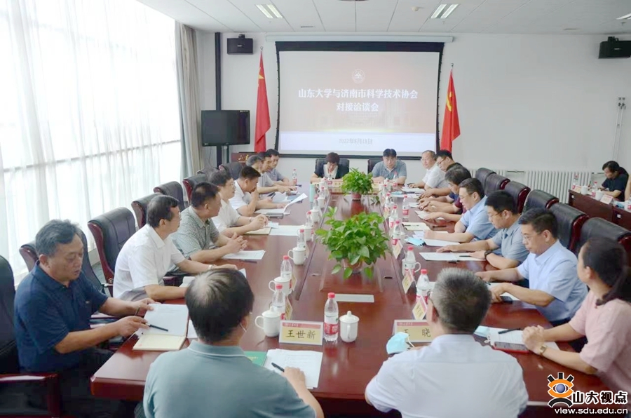 [本站讯]8月18日下午,济南市科学技术协会党组书记贾文涛带队访问山东大学,洽谈进一步推动双方合作,深入实施服务山东战略。副校长吴臻出席并主持会议。
