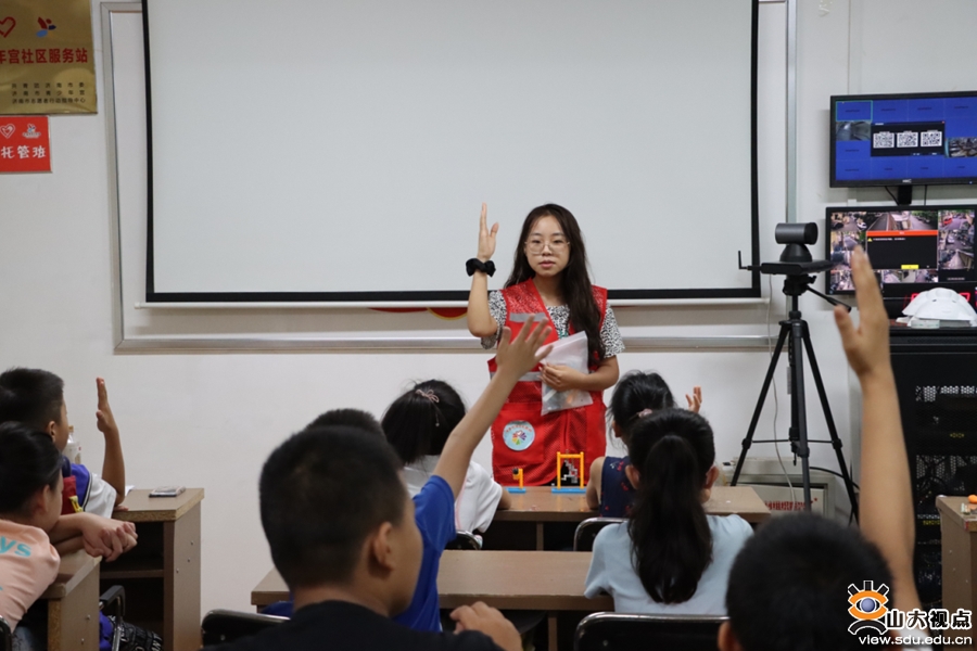 山东大学青年志愿者联合会“雏鹰起飞”志愿服务队深入济南市直西社区等地,通过线上帮扶与线下陪伴相结合的方式,将志愿者与学生一对一精准对接,坚持全面发展,开展多元课堂。志愿服务队还积极利用互联网优势、结合学生需求,开设“雏鹰云课堂”特色线上自习室。经济学院“相遇未莱”希望小屋实践团队采取“9+9”特色培养模式,开设9门学业基础学科辅导与9种为孩子们量身定制的党团红色教育、中华传统文化礼仪体验、摄影入门等兴趣拓展课堂相结合的课程体系。团队还组织参观红色教育基地、民俗文化馆、海岸沙滩公园等4次户外活动,五育并举为孩子提供最舒适的课程体验。同时以红色文化为入手点开展红色教育调研,收集百余份问卷,实地开展3次采访调研,孩子们也有感而发制作了红色主题的美术作品,并参与到了红色诵读的视频录制中。“童年得到的爱,是照亮未来的光。”法学院助茧成蝶队为孩子们制定了暑期专属学习计划,通过线下学生家庭走访,不仅为孩子们带去物质支持,还对其进行学业帮扶和心理辅导,让孩子们在更好的环境下茁壮成长。控制科学与工程学院连心支教团希望小屋实践队结合时政热点,唱响歌曲《国家》,声声动人,传递深厚爱国情;同时实践队还准备了党的二十大相关课程,带领孩子们深入了解党和国家制度,在“祖国未来”的心中埋下红色的种子,以实际行动迎接党的二十大胜利召开。