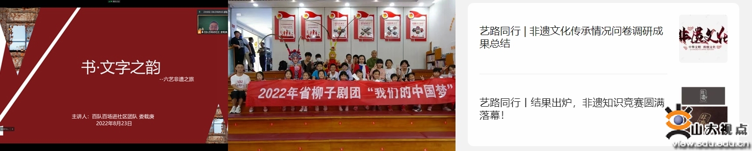 [本站讯]青春助文化弘扬,美育同实践相伴。为充分发挥社会实践育人功能和服务社会职能,实现在实践中以美育人、以文化人,以青年行动迎接党的二十大胜利召开,山东大学大学生艺术团将美育活动与社区实践相结合,组织“艺”路同行社会实践团队,深入参与山东大学“百队百场进社区”暑期社会实践专项,广泛开展系列社区文化活动,以山大青年的文化解读力、表现力、演绎力,让优秀传统文化“飞入寻常百姓家”,为建设社会主义现代化强国贡献山大力量。
