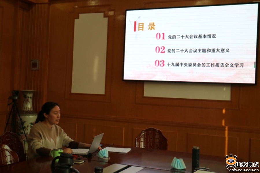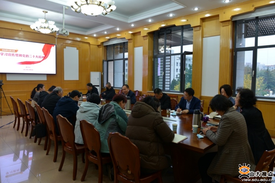 为切实把思想统一到党的二十大精神上来,图书馆党委迅速召开党委理论学习中心组(扩大)学习会议,由党委书记徐关众讲授党课,他结合自己的学习体会,重点从党的二十大的重大意义、过去5年的工作和新时代10年的伟大变革、“两个确立”决定性意义等方面,对党的二十大精神进行了阐释,并对党员干部学习贯彻党的二十大精神提出了要求:一是要坚定不移把学习宣传贯彻党的二十大精神作为当前和今后一个时期的首要政治任务。二是要努力克服困难,以昂扬的斗志圆满完成本年度工作任务,提前谋划好明年各项工作,更加奋发有为地履行好为师生服务的职责,在新的征程交出优异的答卷。