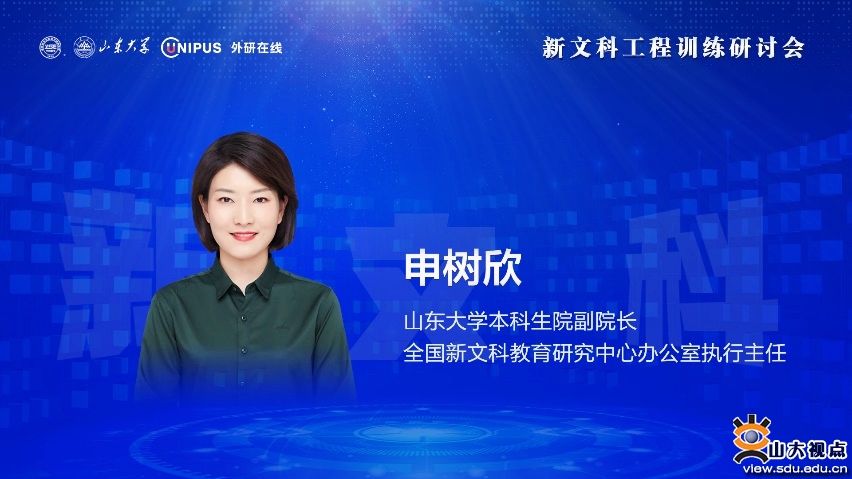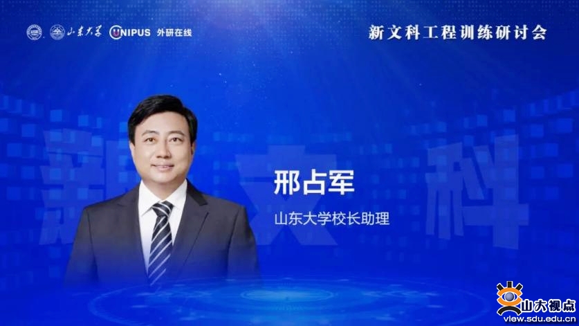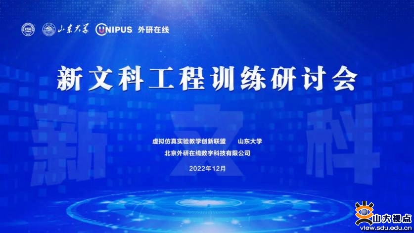 [本站讯]12月12日,由山东大学与虚拟仿真实验教学创新联盟联合举办的新文科工程训练研讨会在线上举行。山东大学校长助理、青岛校区党工委党务副书记邢占军、虚拟仿真实验教学创新联盟执行秘书长王宏宇、北京外研在线数字科技有限公司CEO商其坤出席会议并致辞,来自北京大学、浙江大学、四川大学、武汉大学、南京大学、复旦大学等高校的50余位专家相聚云端,共同探讨新文科建设发展趋势与理论研究成果。山东大学图书馆馆长赵兴胜主持会议。