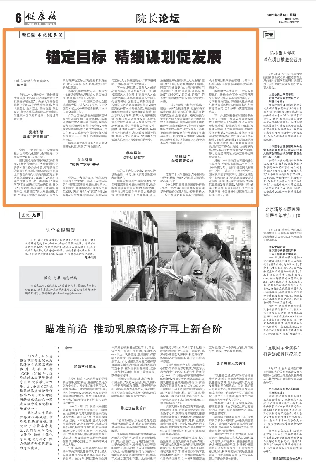 [本站讯]近日,《健康报》院长论坛刊发山东大学齐鲁医院院长陈玉国署名文章《锚定目标 精细谋划促发展》。