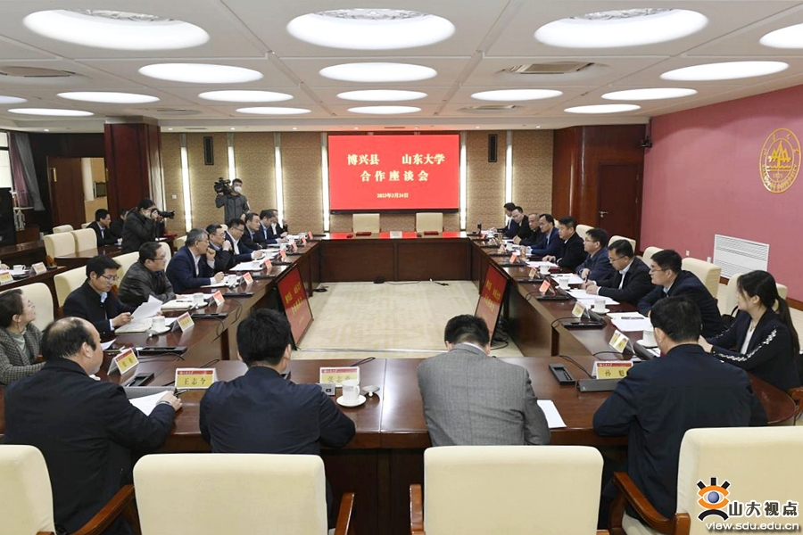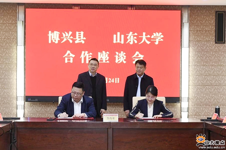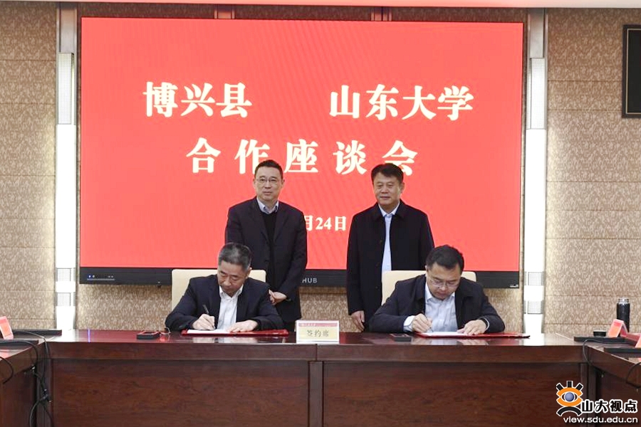 [本站讯]3月24日,山东大学与博兴县合作座谈会暨项目合作协议签约活动在山东大学中心校区举行。山东大学副校长吴臻、博兴县委书记高志国出席活动并致辞。