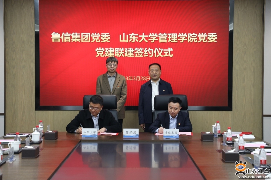 山东大学管理学院党委书记孟庆春与岳增光签署党建联建合作协议。根据协议,双方将以此为契机,交流党建工作经验做法,建立沟通机制,以联合主题党日为载体,定期组织座谈、参观学习等活动。