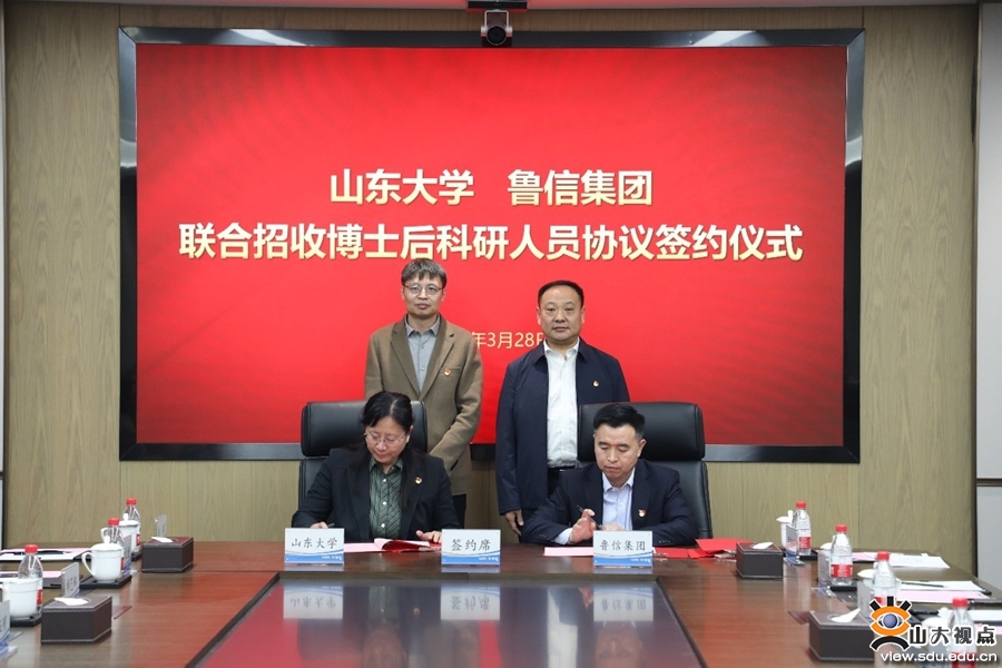 [本站讯]3月28日下午,山东大学与鲁信集团党建联建暨联合培养博士后科研人员签约仪式在鲁信集团办公大楼举行。山东大学人事部部长、人才工作办公室主任刘健,鲁信集团党委副书记、董事范宗杰出席仪式。