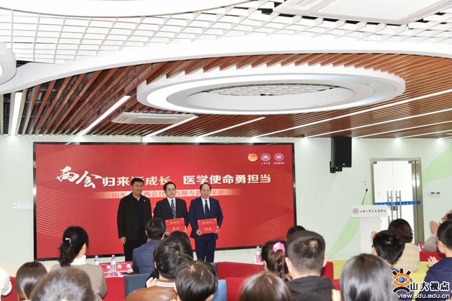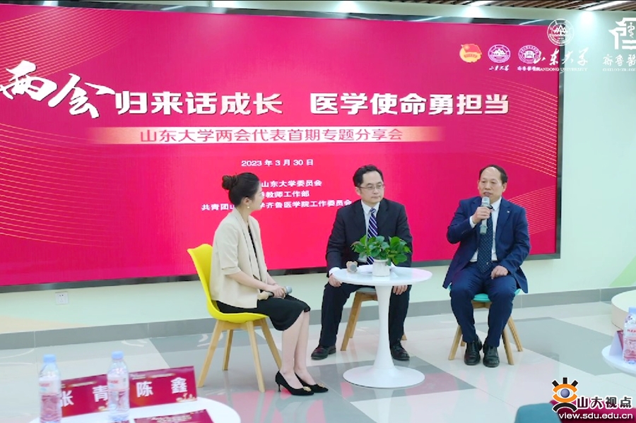 [本站讯]为深入学习宣传贯彻全国两会精神,3月30日,山东大学“两会归来话成长”——两会代表首期专题分享会在趵突泉校区举行。分享会以“两会归来话成长 医学使命勇担当”为主题,全国人大代表、山东大学齐鲁医院乳腺外科主任杨其峰和全国政协委员、山东大学齐鲁医院血液科主任彭军担任主讲嘉宾。