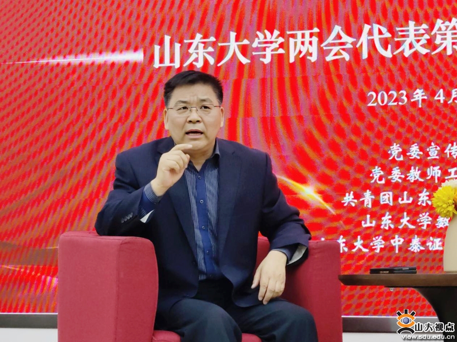 在分享环节,陈增敬教授详细解读了他的提议内容,讲述了提议背后的故事,深情回忆了自己的科研、成长经历,从国际、国内形势等角度讲述基础研究对于国家建设发展的重要性。他表示,现阶段国家大力加强基础研究,提升原始创新能力,对基础学科而言既是机遇也是挑战,青年人在数字年代,要为国家强起来献智,要为建设创新型国家作出贡献。另外,陈增敬教授还分享了作为政协代表亲临两会现场的真实感受,并鼓励青年师生要立足基础研究,不断传承创新,锲而不舍地投身科研,为建设科技强国贡献山大智慧、山大力量、山大担当。
