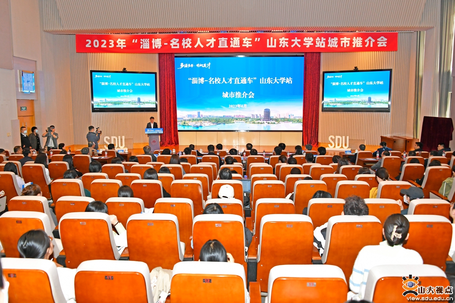 [本站讯]4月12日,2023年“淄博-名校人才直通车”山东大学站城市推介会暨专场招聘会在山东大学中心校区举办。淄博市委常委、副市长李新胜,山东大学党委常委、党委宣传部部长桑晓旻出席活动。