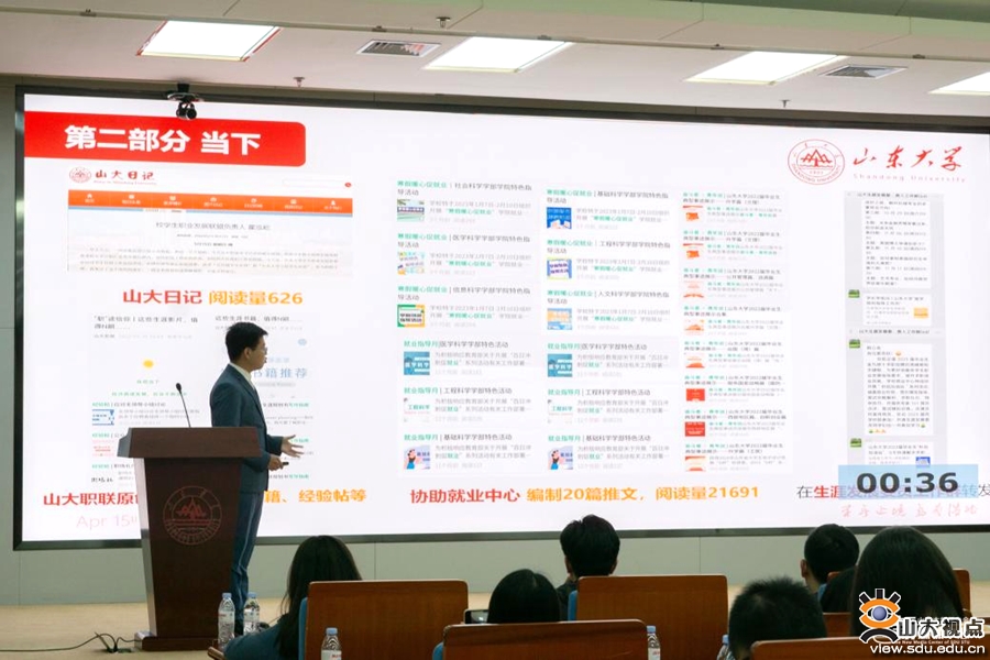 [本站讯]为以评促建、以评促优,引导和推动学生社团健康有序发展,4月15日,校团委组织开展山东大学2022—2023学年学生社团星级评定答辩会。学校79个学生社团依次答辩,对建设概况、特色活动、未来展望等方面进行个性化展示。