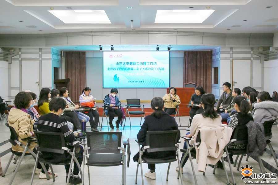 [本站讯]4月21日下午,校工会、妇委会在中心校区图书馆一层报告厅举办了以“走进孩子的内心世界——亲子关系的镜子(沟通)”为主题的亲子关系专题心理工作坊。活动邀请山东大学教授、硕士生导师、注册系统心理督导师、中国心理卫生协会首批心理督导师、欧洲EMDR督导师吴少怡进行指导。来自各个单位的20余名教职工参与了此次工作坊。妇委会主任兼校工会副主席孙玉玲主持活动。