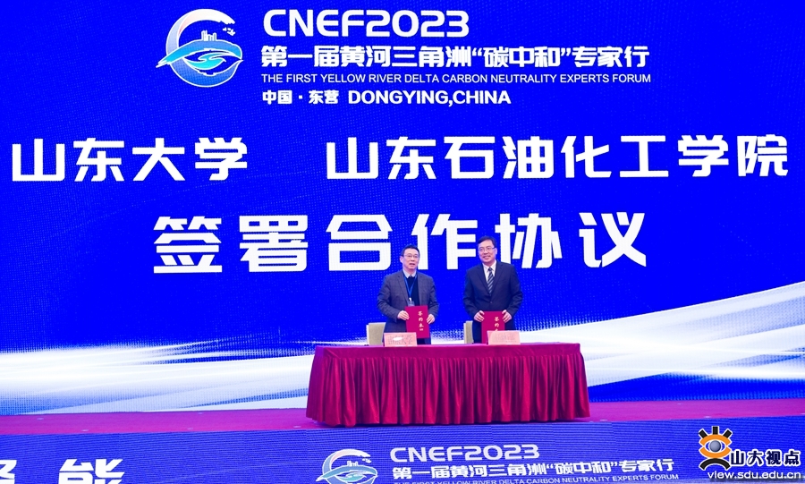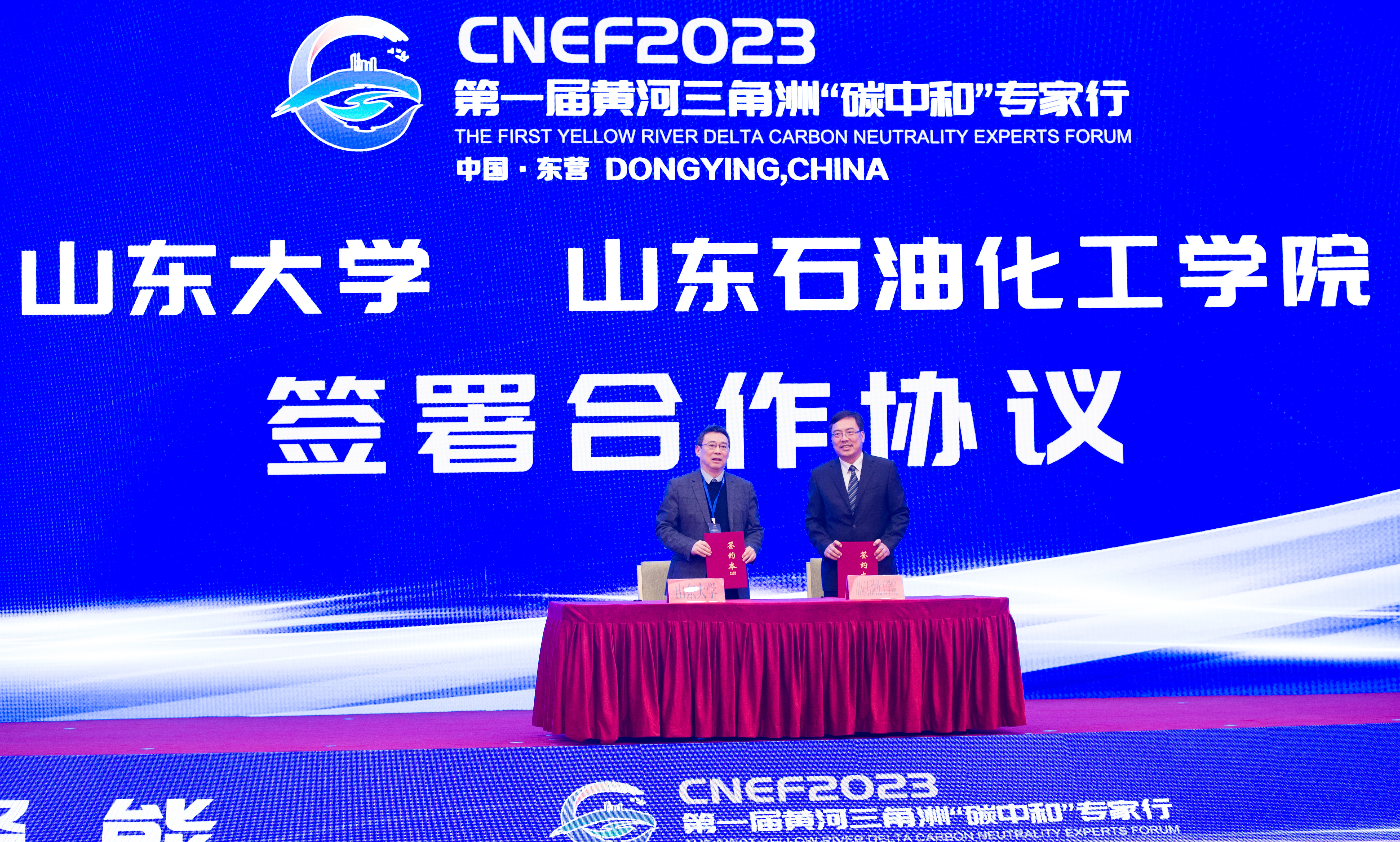 [本站讯]4月23日,第一届黄河三角洲“碳中和”专家行活动在东营市举行。活动上,山东大学与山东石油化工学院签署校际合作框架协议。山东大学副校长吴臻出席活动并代表学校签署合作协议。