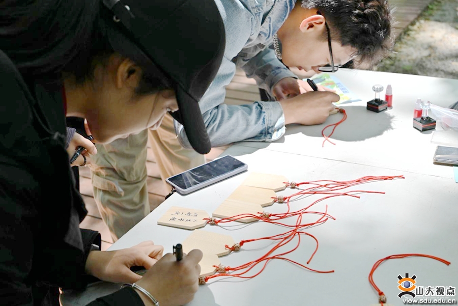 沐风和煦,社团展台活动精彩纷呈。山东大学学生亦弓亦弦小提琴社以大提琴与小提琴的交响为早晨的小树林带来了独特的音乐气息;山东大学学生奇迹风帆爱心服务团将乐曲镶嵌在明信片上送向远方的孩子们;山东大学学生石榴籽爱心社以多民族的色彩替小树林渲染上别样的色彩;山东大学学生魔术协会将魔术的瑰丽神奇融入纸牌之中,小树林中爆发一阵阵喝彩;山东大学学生演讲协会用专业能力展示文字与声音的魔力;山东大学学生唐仲英爱心社用套圈套住精彩,通过青春活力的方式让大家了解更多公益活动……