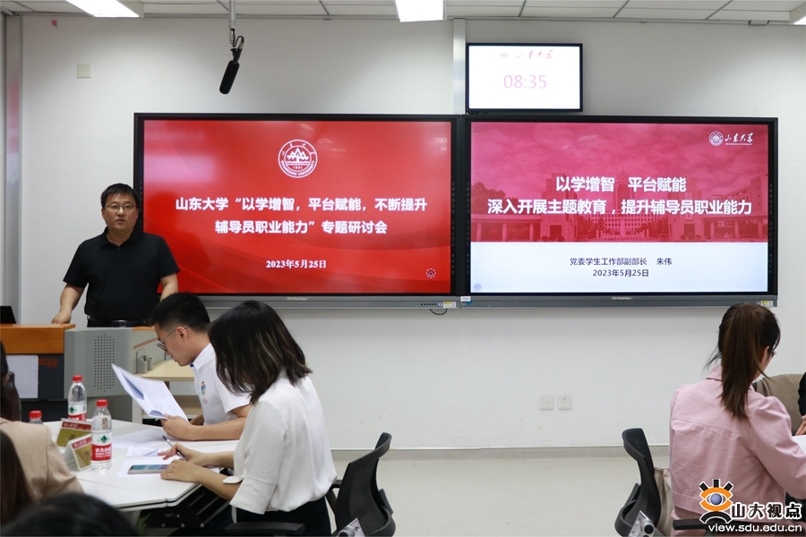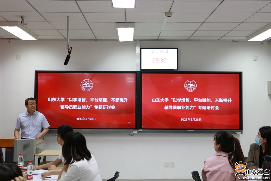 山东大学主题教育第12巡回指导组有关负责人,山东大学学生工作部门有关同志、辅导员代表参加会议。