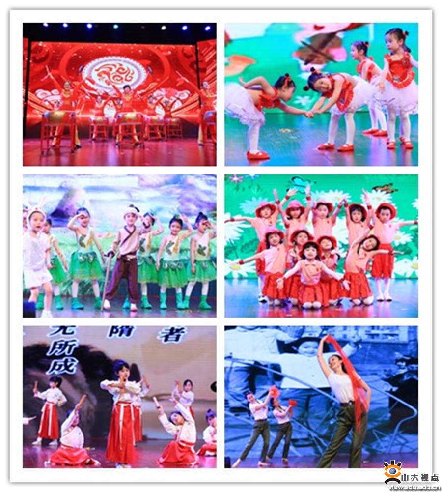 孩子们的文艺演出精彩纷呈,童趣盎然。第一幼儿园的幼儿情景剧“悯农”以惟妙惟肖的角色扮演传达着深刻“尊重劳动、珍惜粮食”的教育意义;诗朗诵“孩子的一百种语言”让师幼情在字里行间缓缓流淌着温暖;教师舞蹈“芳华”表达了一代代山大幼教人传承的青春热情。第二幼儿园的开场舞“欢欣鼓舞”激昂着振奋人心的主旋律;童声合唱“把未来点亮”,孩子们以最纯净澄澈的天籁之音传递着对未来的美好憧憬;亲子律动“爱的圈圈”让妈妈们的爱化作欢快的音乐节拍。第三幼儿园幼儿舞蹈“我可喜欢你”活泼俏皮、轻快动感;幼儿舞蹈“阳光下的花朵”体现了在党的温暖照耀下小朋友们快乐成长;教师舞蹈“盛世中华”舞出了对中国盛世的自豪;亲子朗诵“陪你长大”,爸爸们的“铁汉柔情”感动全场。青岛校区实验幼儿园的幼儿舞蹈“郊游日记”展现了孩子们的五彩童年。威海校区幼儿园的幼儿情景剧“中国娃”以中华五千年文化积淀为画卷,寻迹先贤。