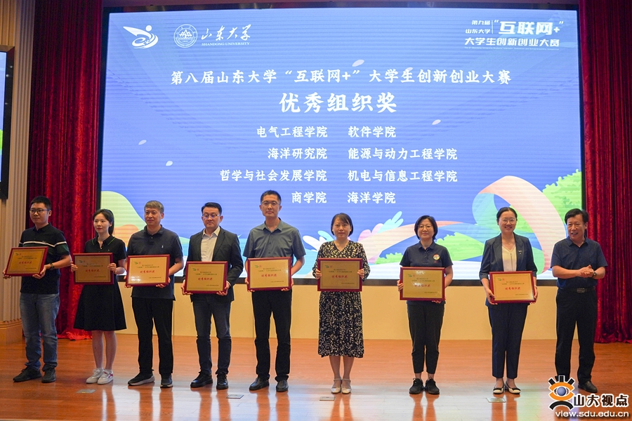 大会授予第八届赛事4个国赛金奖项目的指导教师及项目负责人“突出贡献奖”,授予16个指导单位“优秀组织奖”,聘任21位专家担任“山东大学学生创新创业实践育人导师”,现场颁发奖项并举行聘任仪式。