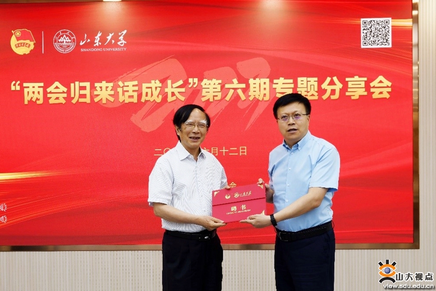 [本站讯]为深入学习宣传贯彻全国两会精神,6月12日,山东大学“两会归来话成长”第六期专题分享会在中心校区明德楼一层工会厅举行。全国政协常委、山东大学儒学高等研究院执行院长、教授王学典担任主讲嘉宾,山东大学党委副书记王君松出席会议。