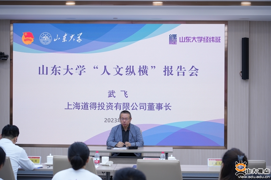 武飞讲述了领导力培养在人生成长中的重要意义与价值,表示上海道得投资有限公司将不断加深与山东大学的合作,发挥山东大学在中华传统优秀文化传播和研究领域的深厚底蕴,将优秀传统文化作为通识教育的重要内容,引领广大青年学生以“德”为先,种下一颗领导力的种子,在实践应用中不断体悟、提升领导力水平,不断成长为兼具深厚家国情怀、宽广国际视野的学术翘楚、行业领袖、兴业良才。