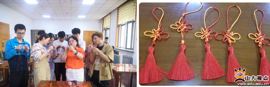 “春始•弘文”传统文化体验活动邀请薛庆玉老师为师生上了一堂生动有趣的手工编织体验课,通过编织金刚结、中国结、文昌结等多种手工艺品,让山大学子感受“中国结”的文化意义,进一步弘扬我国优秀传统文化,展现中华传统手工艺的魅力。