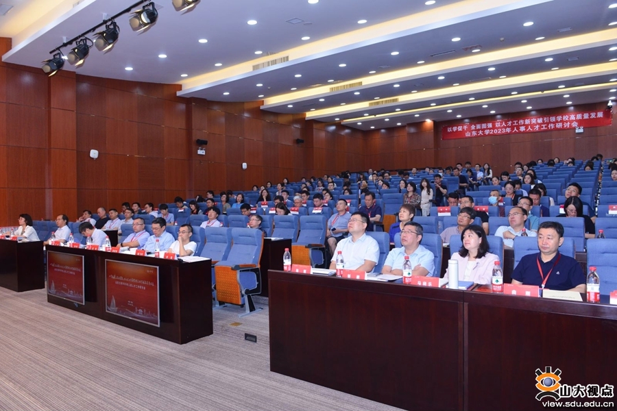 人事部部长、人才工作办公室主任刘健主持会议并作“山东大学关于加强和改进新时代人才工作的实施意见”主题报告。他表示,当前人事人才工作使命前所未有、机遇前所未有、挑战前所未有,人事人才工作者要有所为、大有可为、必须作为。他回顾了2022年山东大学人才队伍引育情况,分析了全校各教学科研单位高水平人才队伍规模与结构,指出了当前必须要解决的问题,并聚焦“提高政治站位,提升工作谋划实施战略格局”“强化顶层设计,倾力打造国家战略人才力量”“专注精耕细作,深化人才发展体制机制改革”“培养最优生态,持续增强人才发展支持保障”四大方面十八条举措对下一步重点工作作详细解读。