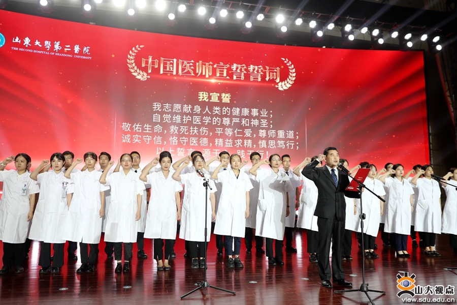 白衣在身,责任在心,薪火相传,勇攀高峰。活动现场还举行了医师宣誓仪式。重症医学科主任医师马承恩带领2023年新入职的医师们庄严宣誓,一句句铮铮誓言、一声声铿锵话语表达出他们投身医疗事业、维护医学圣洁、守护群众生命的坚定决心。