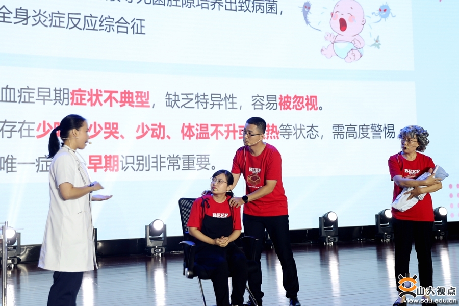 医术医身,科普医心。会议同期举行第五届健康科普大赛,邀请原皮肤科主任张春敏、创伤骨科主任宫明智、干部保健/老年医学科主任蒋卫东、神经外科主任王成伟担任医学导师进行专业指导,邀请张妍、钟锐、吴阳欣蔚、曲真四位艺术导师进行舞台指导。12组晋级选手/组合,分别与艺术导师和医学导师组成“生脊”盎然战队、“敏锐之师”战队、医言医行系健康战队、“幸孕治神”战队,在决赛的舞台上展开对决,呈现了一场精彩绝伦、妙趣横生、科学专业的医学科普盛宴。