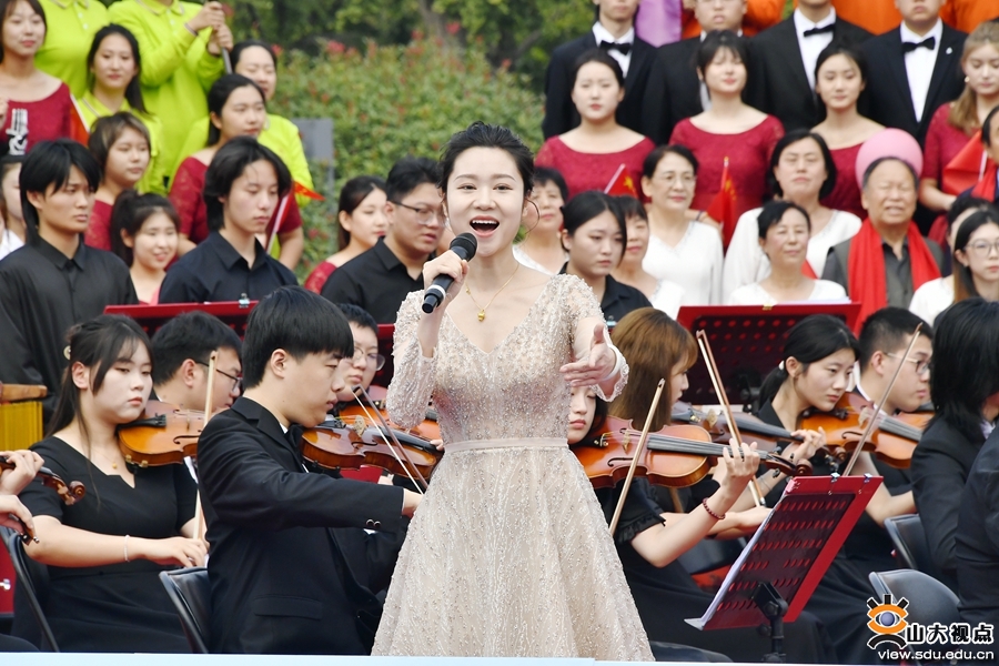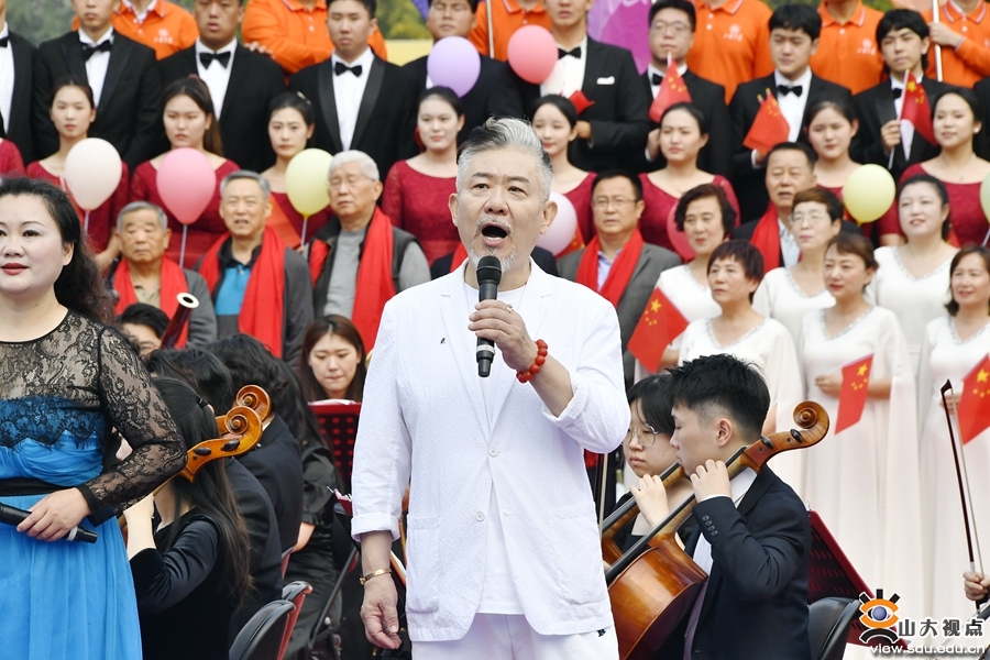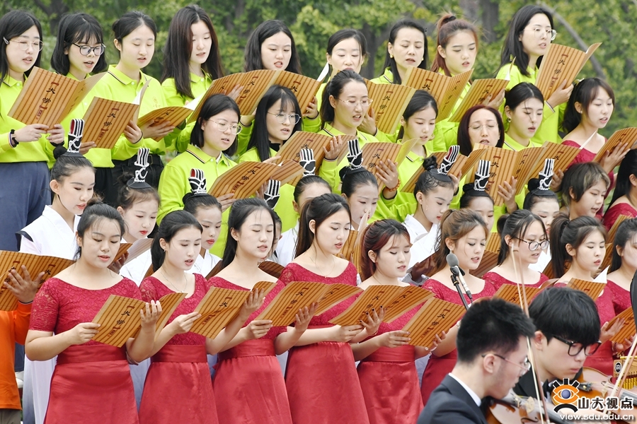 活动中,山东大学原党委副书记方宏建,山东大学校务委员会副主任、未来技术学院院长、山东大学原党委副书记张永兵,山东省政协第十届常委、著名歌唱家、山东演艺集团原总经理、山东歌舞剧院原院长、山东大学特聘教授雷岩,山东省音协副主席、山东师范大学音乐学院副院长、山东大学博士宋春燕,山东大学艺术学院副教授刘书妤,山东大学艺术学院硕士研究生谢文宇领唱,山东大学合唱团、山东大学舜歌合唱团、山东大学校友合唱团、山东大学师生和校友共同演唱了山东大学百廿华诞创作歌曲《我们的文脉源远流长》。深情专业的领唱、气势昂扬的合唱,抒发了山大人真挚浓厚的爱校情怀,歌声吸引了众多师生驻足聆听,现场气氛达到高潮。