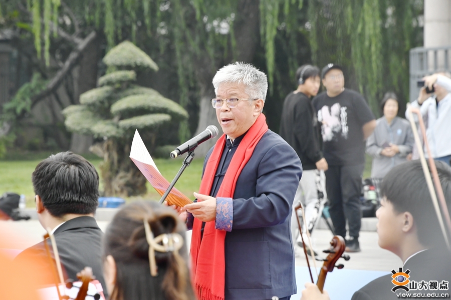 “大学之道,在明明德,在亲民,在止于至善”……在全国人大代表、中国孔子研究院原院长、山东大学儒学高等研究院教授杨朝明带领下,参加活动的嘉宾共同诵读国学经典《大学》。浓厚的文化氛围、澎湃于内心的文化自信,展示了山大人汲取圣贤力量,致力于传承、传播、弘扬中华文化的担当。