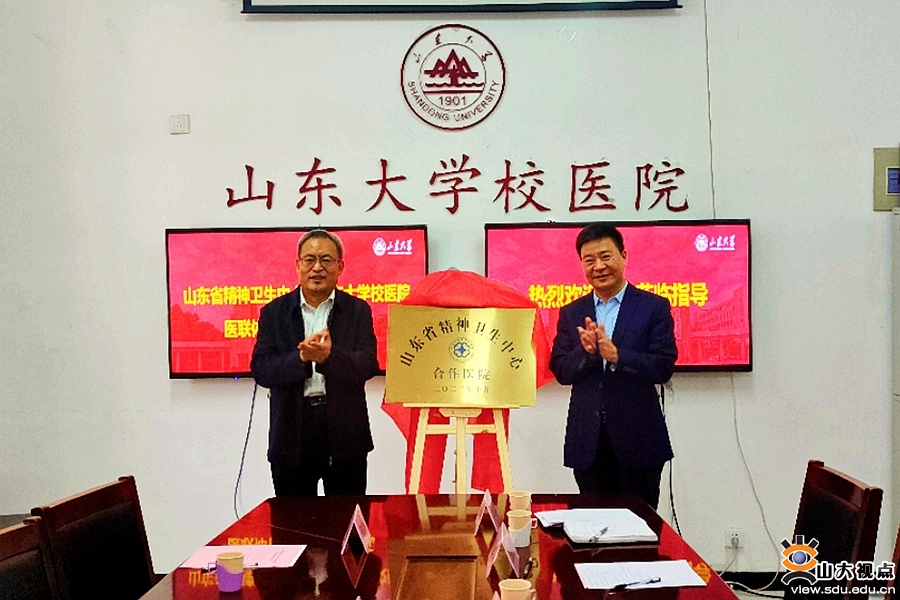 [本站讯]10月30日,山东省精神卫生中心与山东大学校医院医联体合作医院揭牌仪式在山东大学校医院举行。山东省精神卫生中心党委书记于天贵,山东大学副校长朱德建出席仪式。