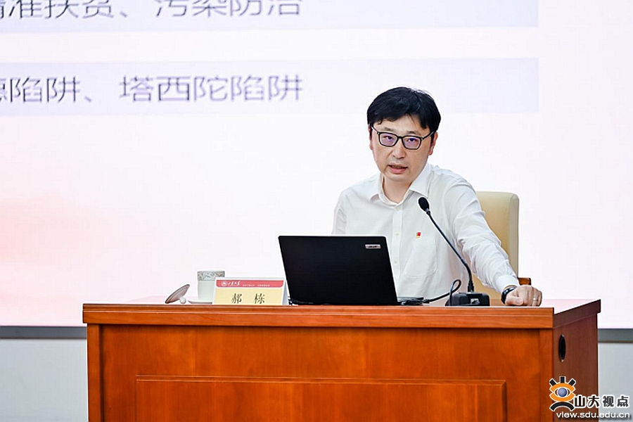 主旨报告环节,中共中央党校(国家行政学院)教授郝栋围绕高举习近平新时代中国特色社会主义思想伟大旗帜、走中国式现代化道路、自我革命的精神状态以及实现第二个百年奋斗目标四个方面,对“实现中华民族伟大复兴的系统方案——中国式现代化”进行了全面讲解。山东省委党校教授申富强从实践的角度对研究生党支部书记的思想政治工作方式方法展开授课。从“共产党是干什么事的、共产党是为什么人的”为切入点,作了专题讲解。在工作布置环节,党委研究生工作部韩笑晨对全国研究生党支部“党建双创”工作进行了回顾和解读,介绍了下一步学校开展研究生党支部的培育建设提升计划的具体内容。