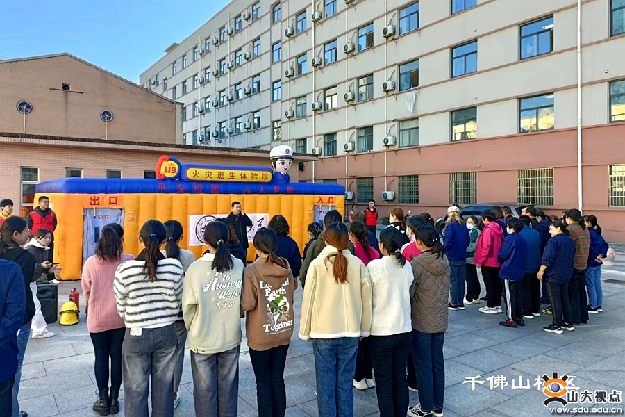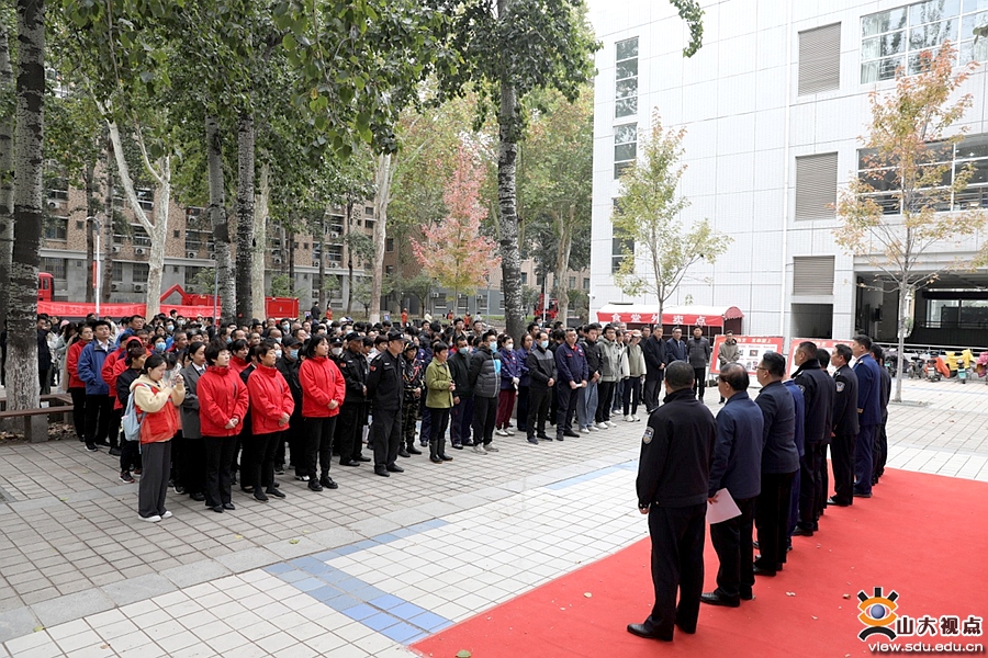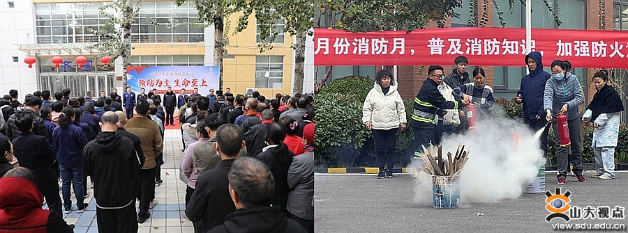 济南消防救援支队、济南市公安局、历城公安分局、山大路派出所属地有关负责人,学校职能部门、各学院分管安全工作有关负责人和安全联络员,党支部消防主题共建单位如新闻传播学院、化学与化工学院、管理学院、物理学院、晶体材料研究院(新一代半导体材料研究院)有关负责人、学校部分学院和服务保障单位的师生员工代表400余人参加活动。