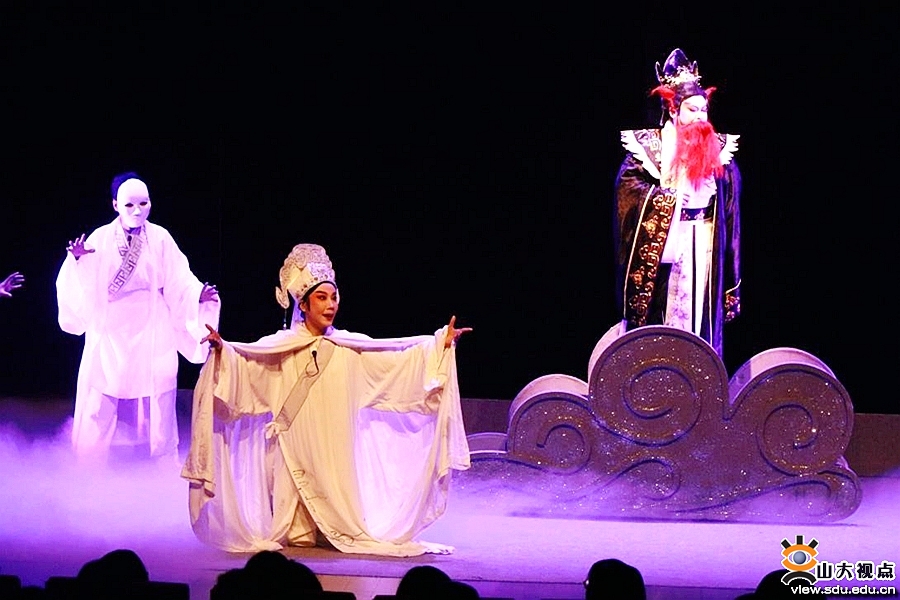 “碧草青青花盛开,彩蝶双双久徘徊,千古传颂声声爱,山伯永恋祝英台……”舞台上,老师们技艺精湛,唱腔优美;舞台下,观众们如痴如醉,掌声不断。现场师生欣赏了由山东大学校友、山东省青年新锐导演刘絮执导,济南市吕剧院重点打造的剧目《山伯》展演,享受了一场视听和精神的盛宴。师生在领略吕剧之美的同时,也近距离感受到了中华传统文化的魅力和活力。