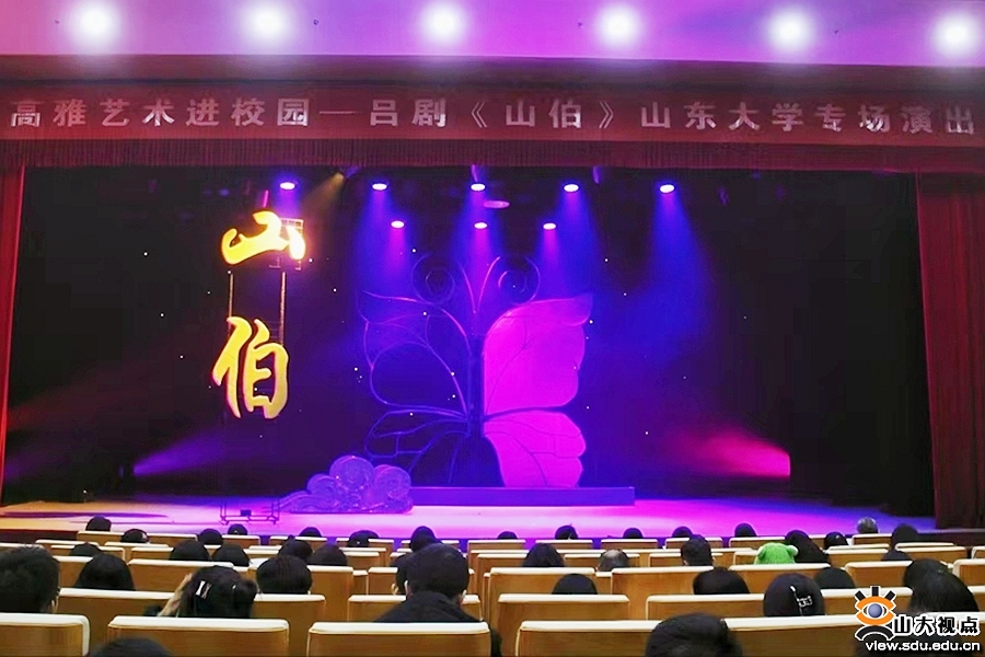 [本站讯]为深入学习贯彻落实党的二十大精神,弘扬中华优秀传统文化,进一步丰富师生校园文化生活,11月10日晚,山东大学举办“高雅艺术进校园”吕剧《山伯》专场演出活动。本次活动吸引来自全校各单位近500名师生共赏这场艺术盛宴,感受传统文化吕剧艺术的独特魅力。