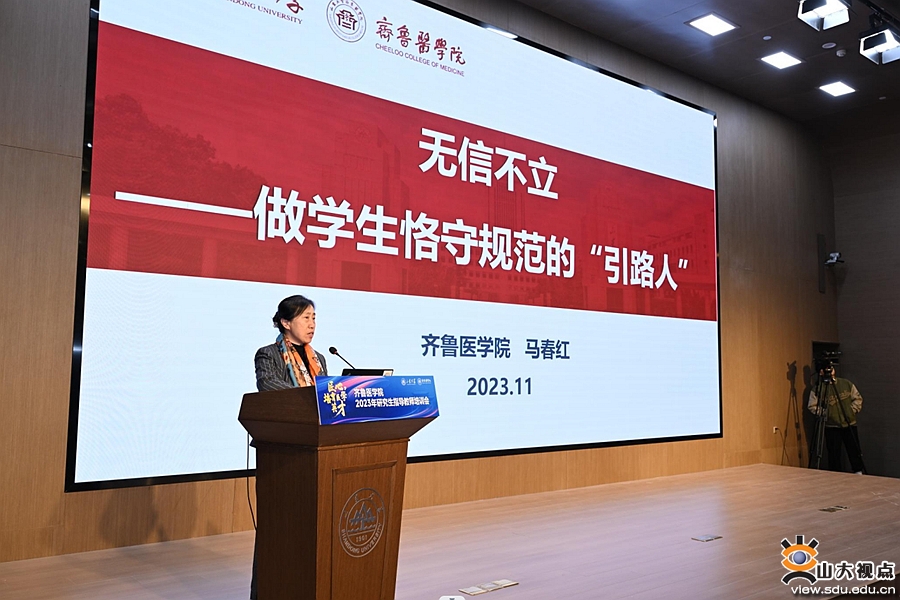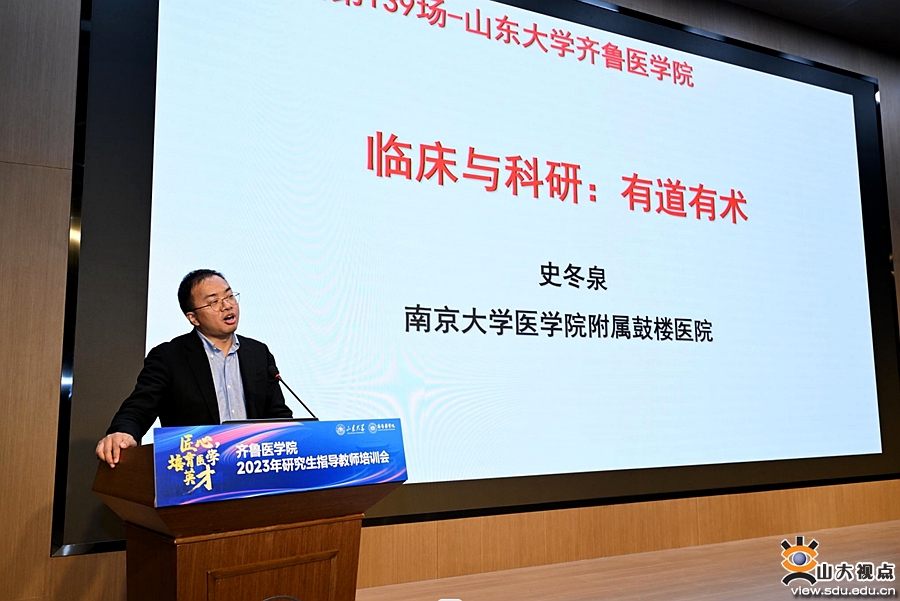 [本站讯]为深入学习贯彻党的二十大精神,以强化导师队伍建设来回答“培养什么人、怎样培养人、为谁培养人”这一教育根本问题,11月16日,齐鲁医学院召开医学学科2023年研究生指导教师培训会。本次会议以“匠心,培育医学英才”为题,聚焦立德树人根本任务,从“课程思政”“道术合一”“医者仁心”等多维度阐述新时期研究生教育使命和如何筑牢研究生培养质量的生命线。山东大学副校长易凡出席会议并致开幕词。
