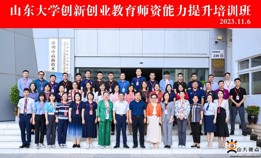 [本站讯]为全面贯彻落实党的二十大有关科技、教育、人才“三位一体”协同发展的重要部署,落实立德树人根本任务,助力学校在“两个先行先试”中作表率,助推创新型拔尖人才培养,由研究院承办的“山东大学创新创业教育师资能力提升培训班”在深圳举行。山东大学就业创业指导中心主任肖祥,山东大学校友会副会长、山东大学深圳研究院常务副院长王明星,山东大学校友会理事、山东大学深圳校友会副会长傅杰出席开班式。