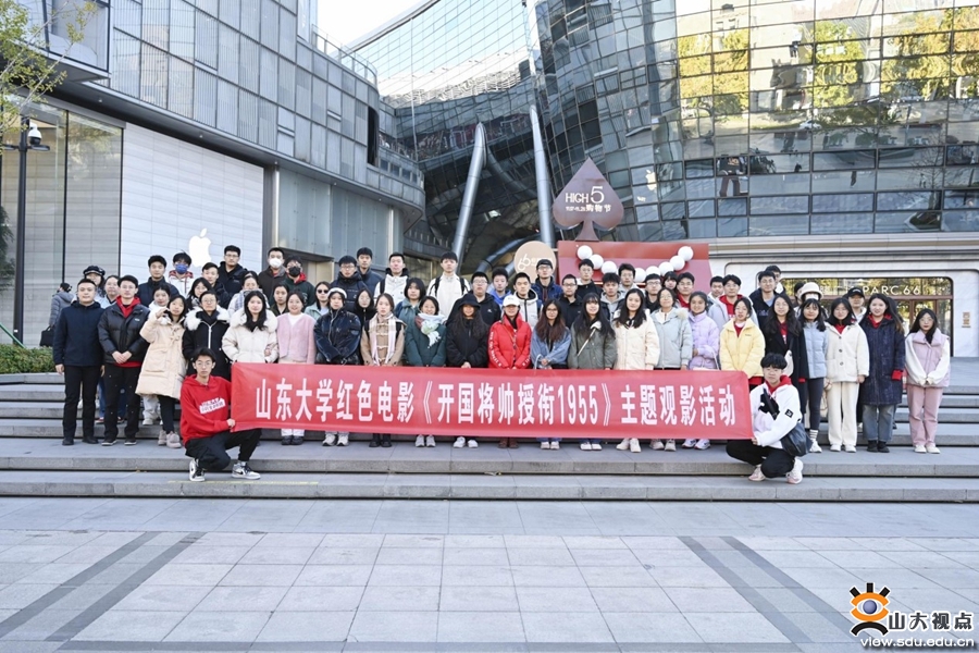 [本站讯]由中宣部重大办立项确拍,山东省委宣传部、共青团中央、济南市委宣传部等联合摄制的革命历史题材电影《开国将帅授衔1955》全国首映式2023年11月17日于济南市举办。为深入学习贯彻党的二十大精神,充分发挥优秀主旋律影片的宣传教育作用,鼓励更多同学传承红色基因、激发爱国热情、厚植家国情怀,主办方联合山东大学团委在首映式期间共同举办“《开国将帅授衔1955》走进山东大学活动”,第26届山东大学研支团成员,菁英班成员,学生会、研究生会骨干学生代表及部分团员学生百余名青年学子参与观影活动。